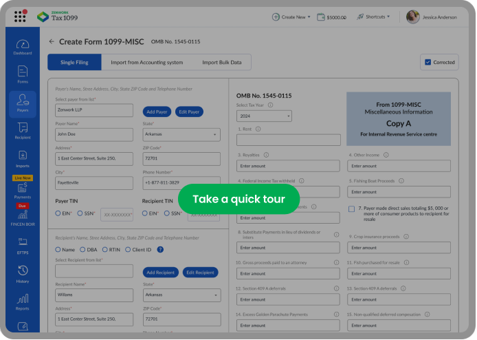 Bulk file 1099-MISC forms for high-volume transactions across multiple entities. File 3X faster and save 75% on compliance time and costs.