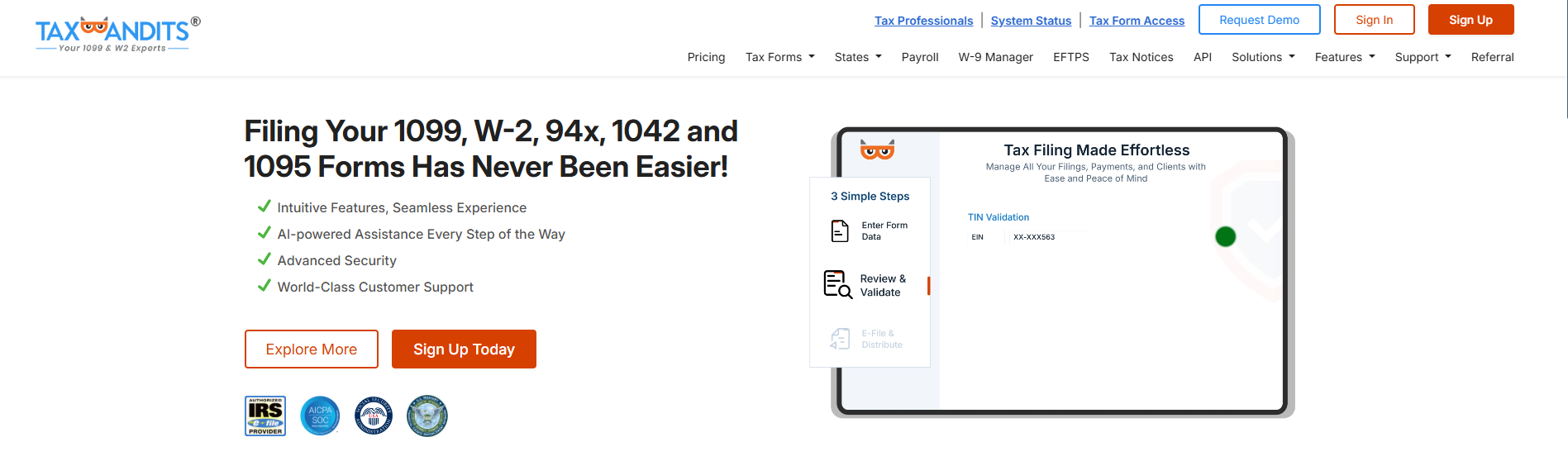 Platforms like Tax1099 can help in validating the data and format, rectifying errors, and keeping you compliant, even with last-minute changes. So, let’s understand the top seven 1042-S e-file solutions for 2025 that can ease the compliance stress for you.