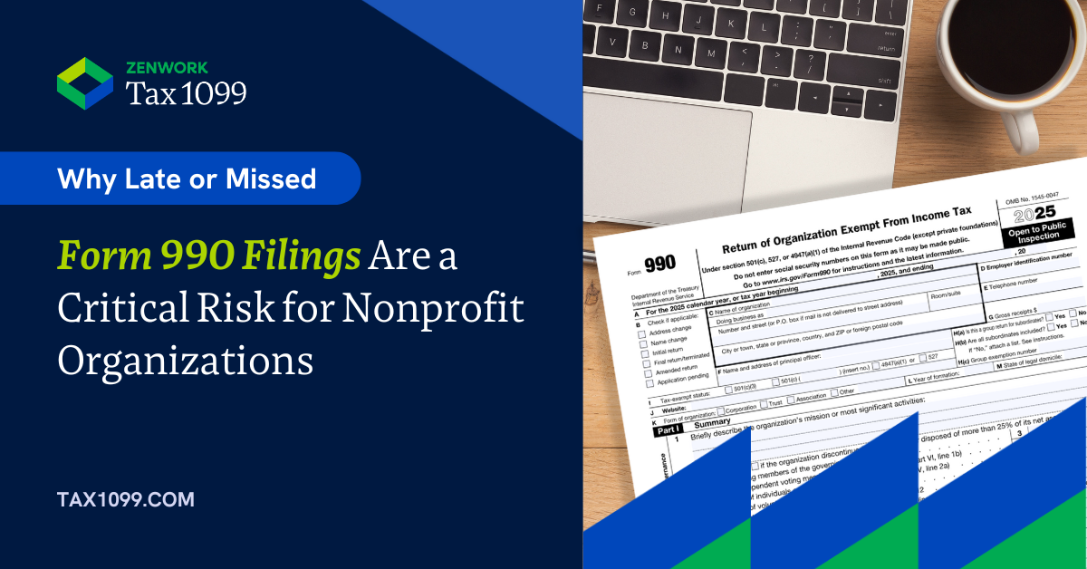 Zenwork’s Form 990 e-filing capability is designed to address the two most common drivers of late or noncompliant filings: process breakdowns and lack of visibility.