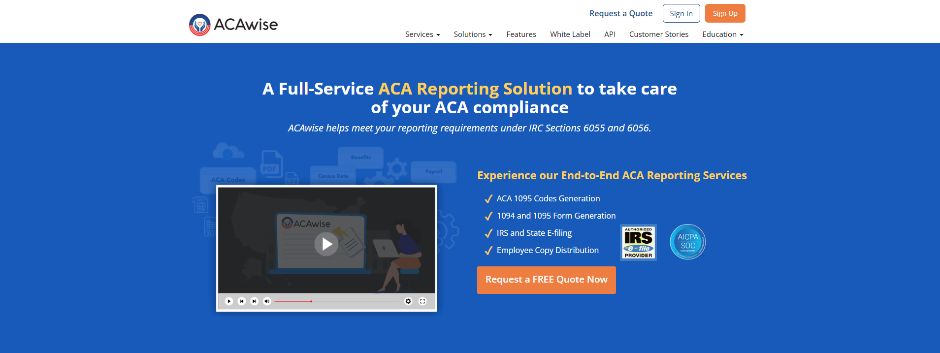 ACAwise is a comprehensive, full-service solution for tracking and reporting compliance with the Affordable Care Act. The software is best suited for Applicable Large Employers (ALEs), third-party service providers, compliance consultants, accountants, payroll businesses, human resource departments, and those who oversee monitoring ACA compliance.Key features