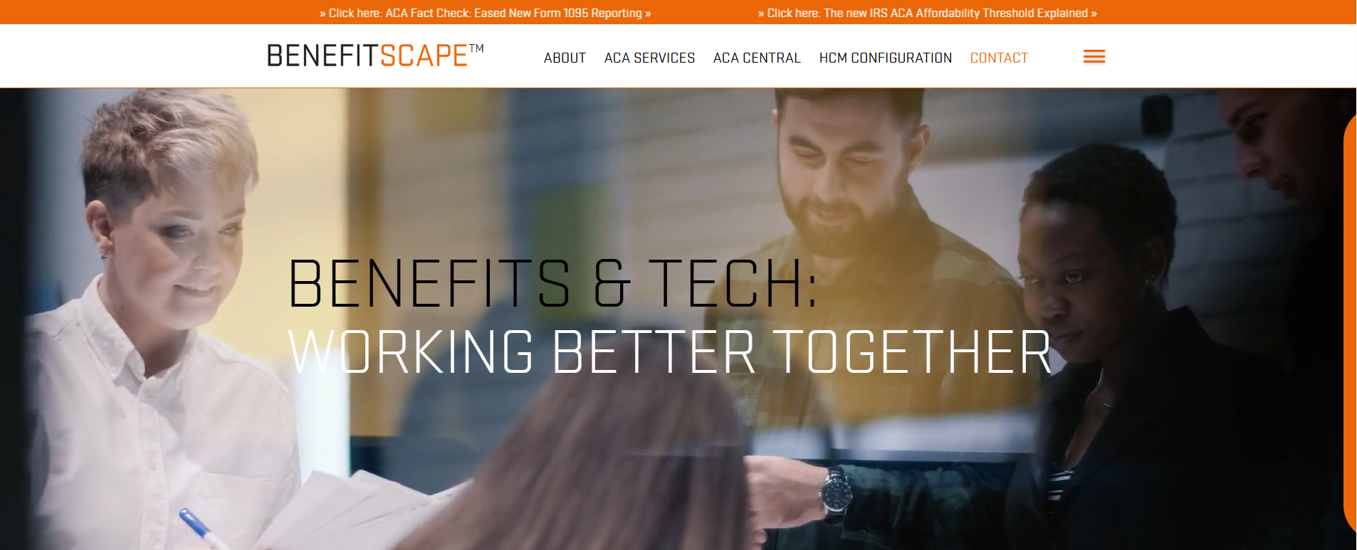 BenefitScape can function independently or integrate easily with your current service providers, including Payroll, HRIS, HCM, or Benefits Administration systems. The software’s ACACompliance services can be tailored to function smoothly with any employer configuration, any existing data formats, and at any point of the ACA Compliance process due to the specialized ACATech platform, in-house specialists, and operational flexibility.Key features